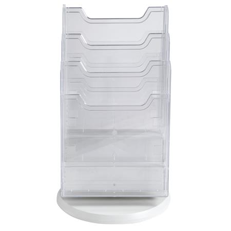 Asztali prospektustartó A4-es méretű dokumentumokhoz.