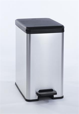 Funkcionális szemetes a fürdőszoba, vagy a konyha könnyebb tisztántartásához. Tökéletesen illik a modern kialakítású fürdőszobákba és konyhákba. Kíváló minőségű műanyagból készült, a metálfényű fólia bevonat biztosítja a fémérzetet, de mégis könnyű marad. A hulladéktároló nyitása lábbal, egy speciális pedállal történik, így a kezek tiszták maradnak. A fedél szerkezete biztosítja a kosár tartalmának folyamatosan elzárt és láthatatlan tárolását. A vékony forma megkönnyíti a szemetes esztétikus elhelyezését a belső terekben.