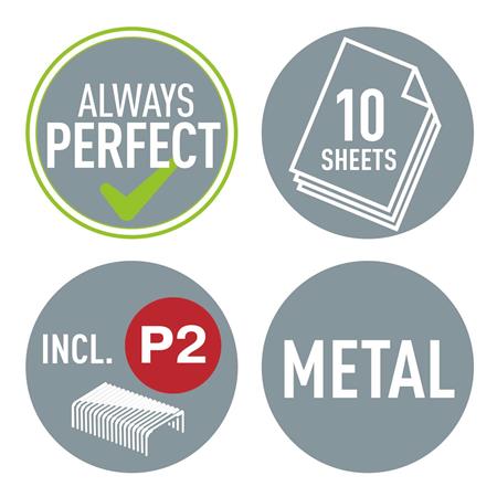 - No. 10 méretű Leitz Power Performance P2 tűzőkapoccsal használható