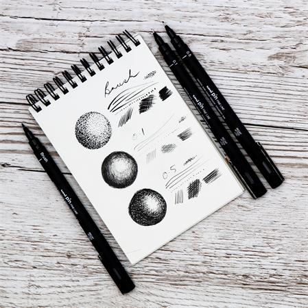 -fakulásálló pigmenttintát tartalmaz, így a finom ecsethegy számos vonal opciót kínál, a vékony és szuperfinomtól a merész, kifejező és szélesig
