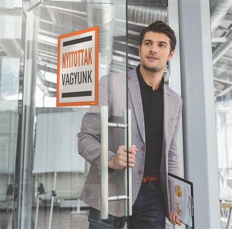 A DURAFRAME® segítségével profin és kényelmesen helyezhetjük ki dokumentumainkat bármilyen sima, kemény felületre, például ablakra, iratszekrényre vagy ajtóra.